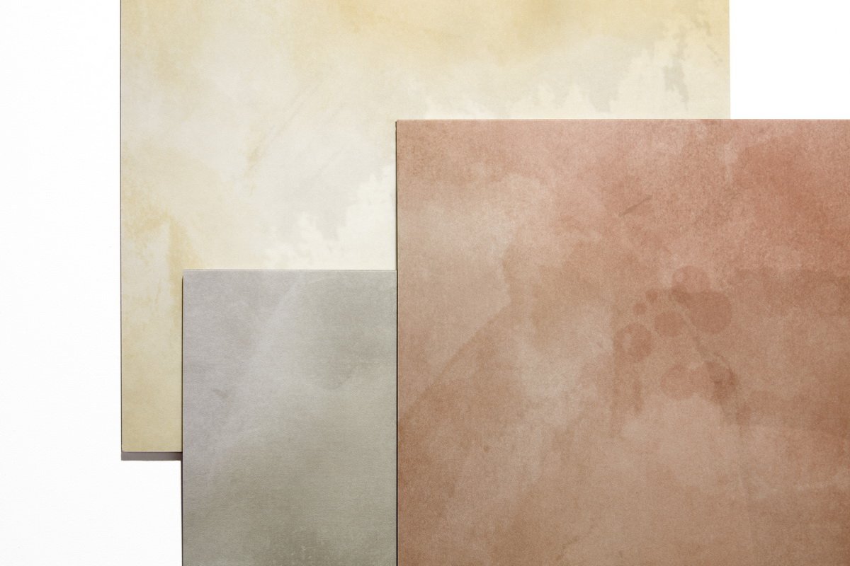Iridescence kolekcija inspirisana je upotrebom mineralnih i organiskih pigmenata koji stvaraju slojeve raznolikih nijansi i apstraktno oslikane površine. Boje se spajaju jedna s drugom uz mekoću zadimljenog prelaza koji u unutrašnji prostor unosi smirenost. Paleta obuhvata mnoštvo boja koje uzbuđuju i inspirišu. Dimne sive boje pružaju neutralnu osnovu s vidljivim mekim uzorkom. Neki tonovi kombinuju sivu, rumeno ružićastu i puderasto plavu, i daju suptilan i elegantan podni dizajn. Zemljane i mineralne boje terakote i gline temelj su kolekcije, naspram zasićenih nijansi žute i plave boje koje oživljavaju raspon i osiguravaju atmosferu.